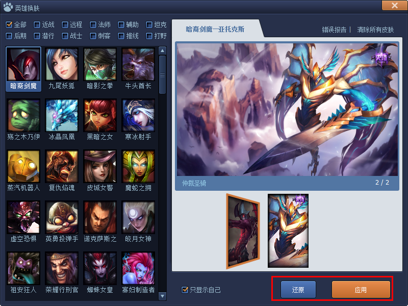 英雄聯(lián)盟大腳皮膚恢復(fù)補(bǔ)丁是一款可以自由設(shè)定游戲皮膚的lol插件,雖然使用插件更換補(bǔ)丁非常方便但是也有可能被封號(hào),這款補(bǔ)丁就是讓你可以自由還原更換過(guò)的皮膚,隨意更換方便安全,需要的朋友可以試試!