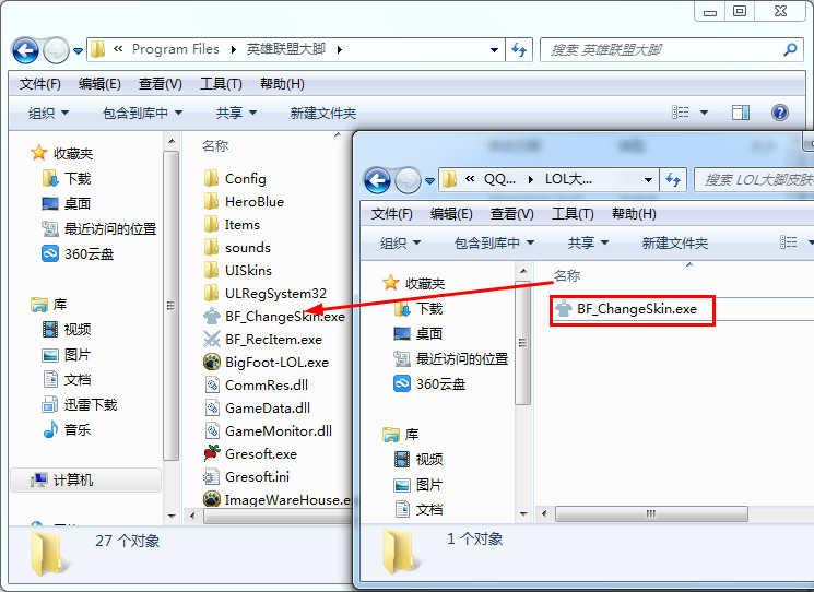 下載解壓后,將“BF_ChangeSkin.exe”文件替換到英雄聯(lián)盟大腳中