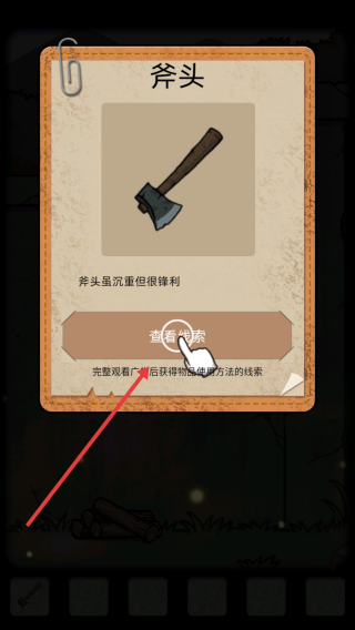 2、收集斧頭道具,點(diǎn)擊查看線索,獲取解謎提示,依據(jù)線索找場景關(guān)聯(lián),破解機(jī)關(guān)。