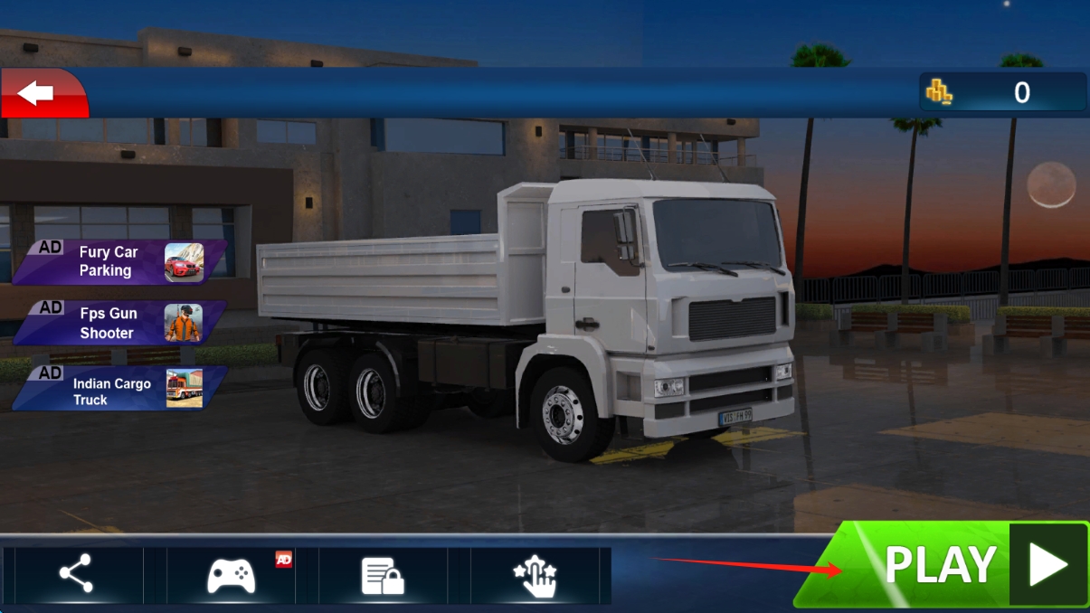 1、點(diǎn)擊PLAY,進(jìn)入卡車模擬游戲,開啟駕駛挑戰(zhàn),體驗(yàn)不同任務(wù)模式,點(diǎn)擊開始游戲。