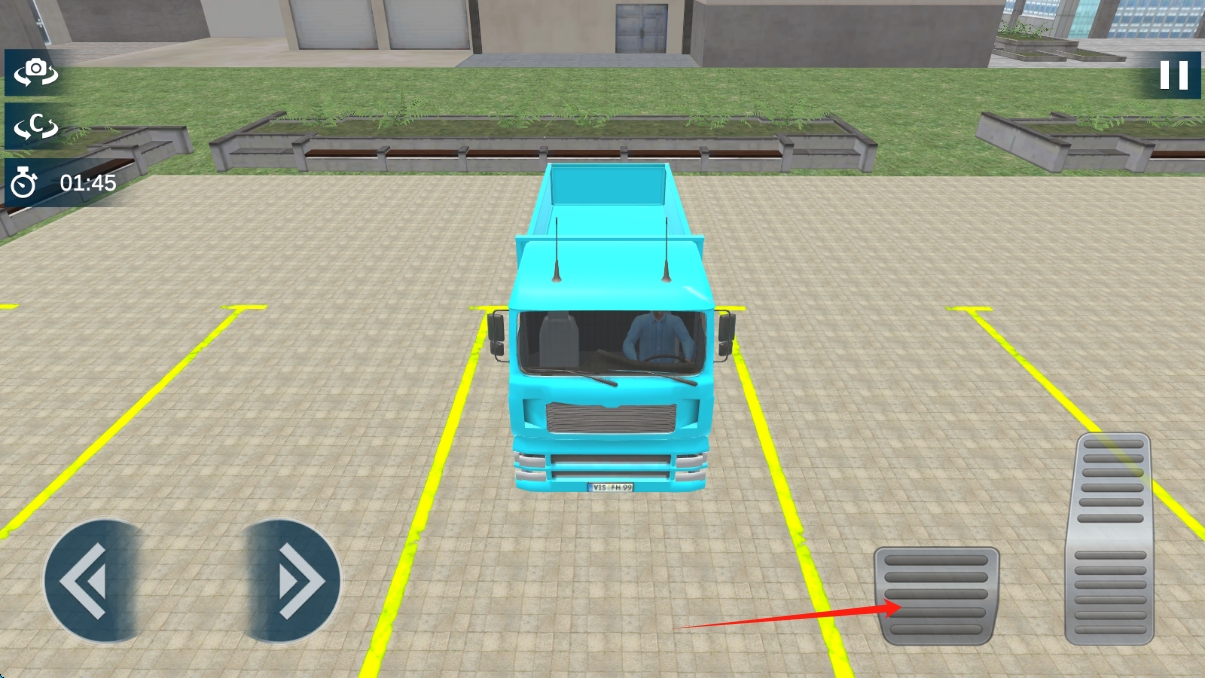 3、游戲中,點(diǎn)擊右側(cè)踏板,操控卡車前進(jìn),按任務(wù)要求完成駕駛與運(yùn)輸,點(diǎn)擊倒車。