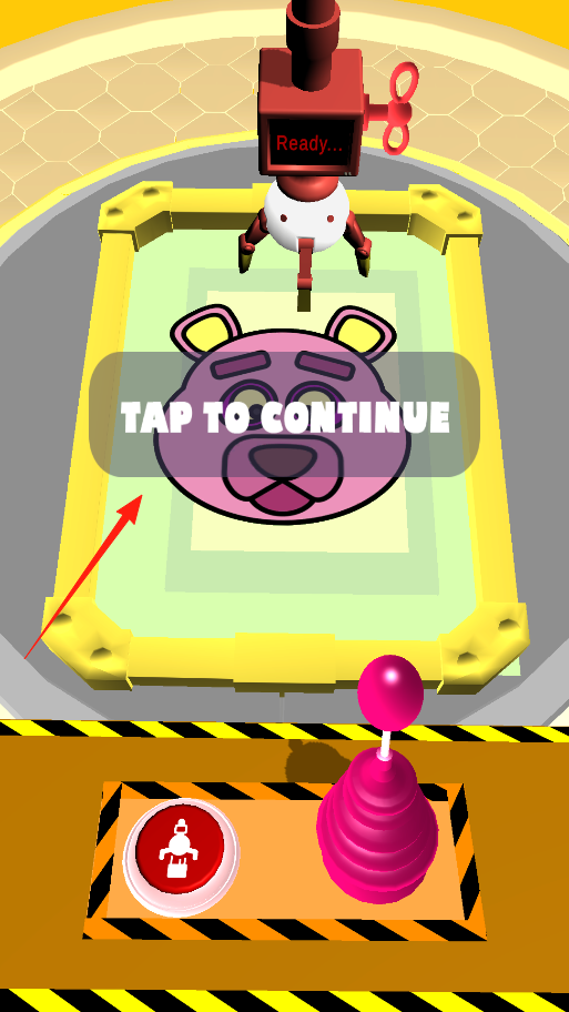 1、眼前是臺超有趣的機器,粉色小熊圖案在工作臺上超顯眼,看到TAP TO CONTINUE,點一下就能啟動流程,機器會開始奇妙操作。