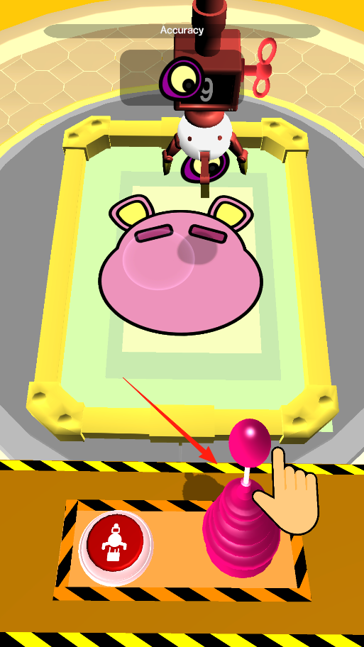 3、機器開始加工,根據(jù)之前記住的樣子,操作下方粉色搖桿,調(diào)整機器的加工軌跡,讓圖案還原,靠搖桿控制,把變形的小熊變回原來模樣,考驗手腦配合。