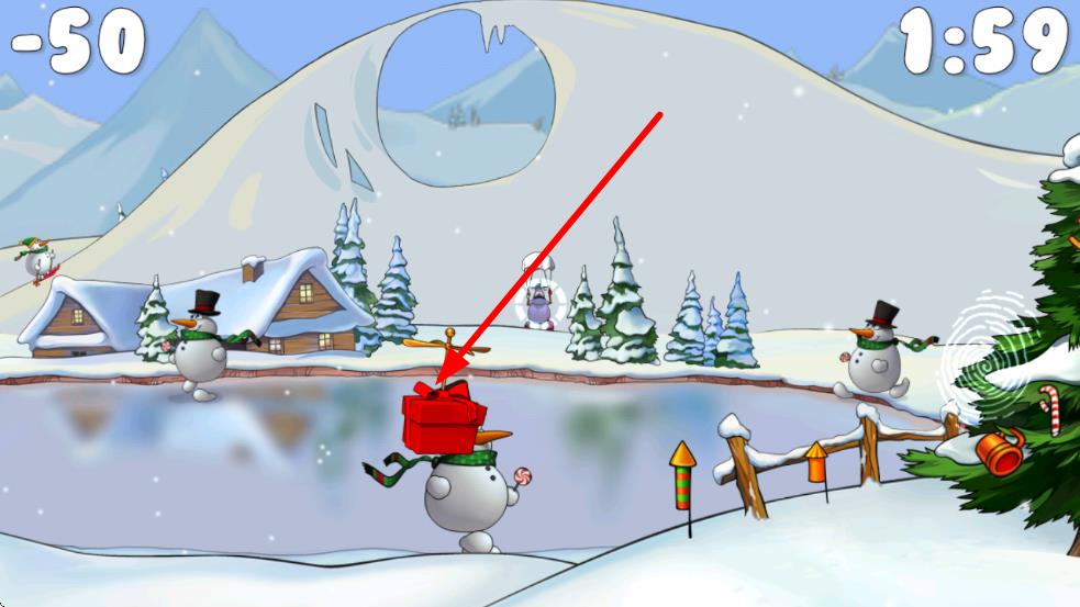 2、在移動(dòng)中瞄準(zhǔn)邪惡雪人射擊,利用場(chǎng)景中的掩體躲避攻擊。