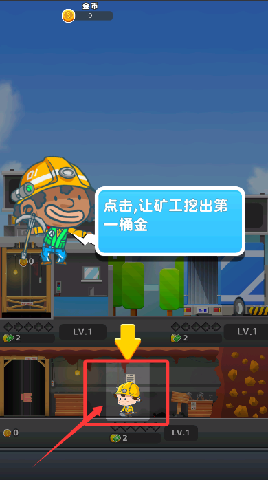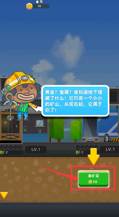 1、游戲開始后,點擊“新礦層”選項,消耗10枚金幣即可解鎖新的開采區(qū)域。