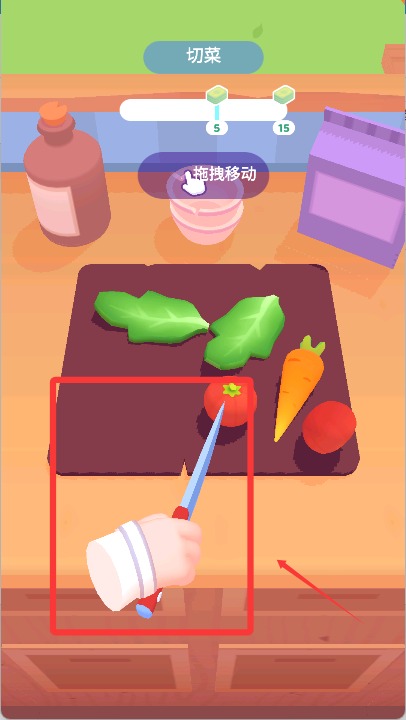 3、然后就可以拖拽移動(dòng)菜刀,會(huì)自動(dòng)切菜。