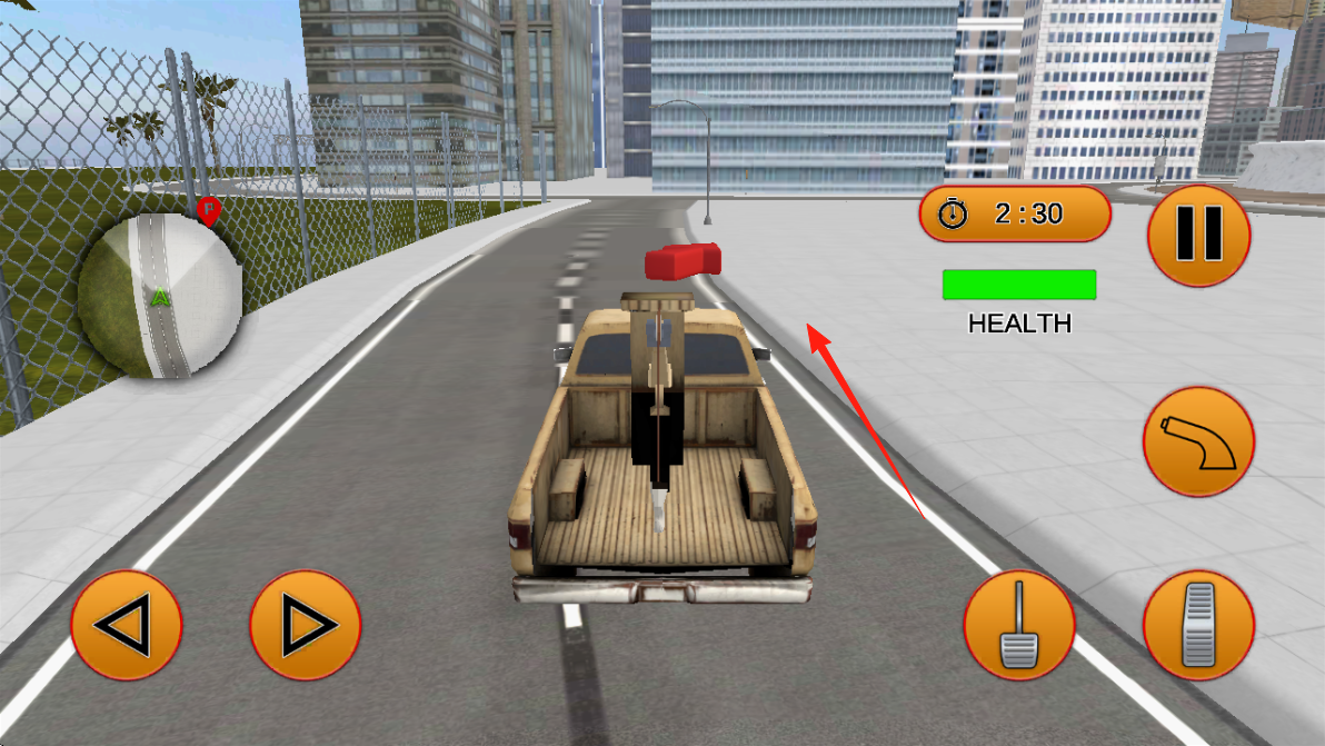 3、沿箭頭指向的道路,駕駛拖車前進,留意時間和健康值,順利完成拖運流程。