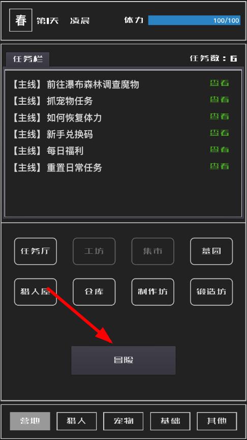 1、進(jìn)入后創(chuàng)建獵人角色,了解文字界面中戰(zhàn)斗、移動(dòng)等基礎(chǔ)操作方式,通過(guò)首次對(duì)戰(zhàn)熟悉戰(zhàn)斗機(jī)制,獲取初始武器裝備,開啟異世界的冒險(xiǎn)征程。