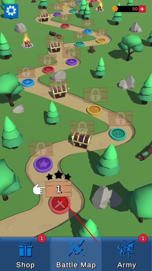 3、合理消除、搭配兵種,守護路徑,成功通關(guān)獲獎勵,解鎖新地圖關(guān)卡,強化army繼續(xù)挑戰(zhàn)。
