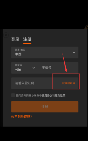 3、點(diǎn)擊獲取驗(yàn)證碼,等待獲取驗(yàn)證碼。