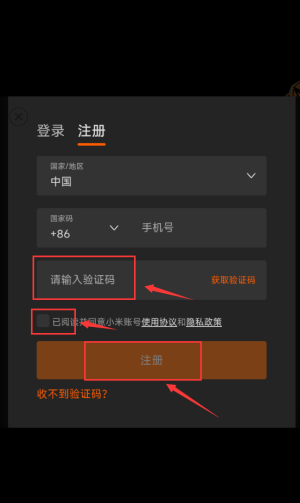 4、填寫(xiě)驗(yàn)證碼后,點(diǎn)擊注冊(cè)按鈕完成操作。