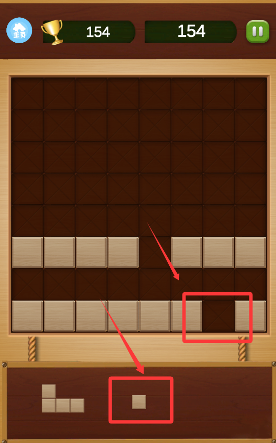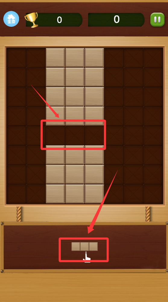 3、移動(dòng)下面的長條方塊放到紅色框框的位置就能消除。