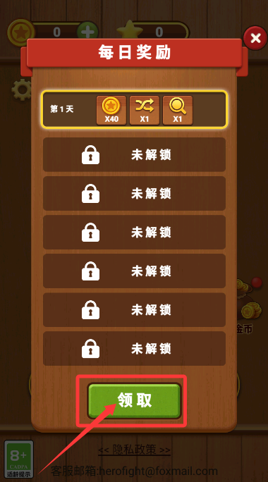 1、登錄游戲首屏,點擊每日福利窗口確認領(lǐng)取當(dāng)日登錄禮包。