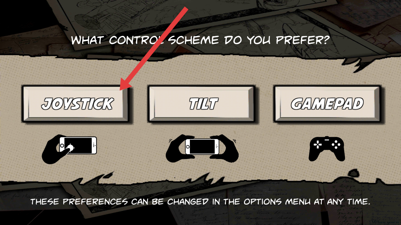 1、在控制方案的選擇界面,選擇自己喜歡的操控方式,可以點(diǎn)擊JOYSTICK的選項(xiàng),選定搖桿操控的模式。