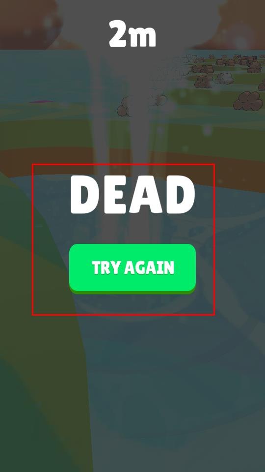 3、若不幸落水出現(xiàn)DEAD提示,點擊TRY AGAIN按鈕可重新開始,回到起點再次挑戰(zhàn),爭取順利通關(guān)。
