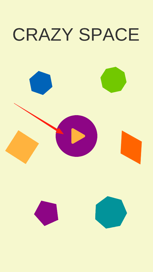 1、進(jìn)入瘋狂空間,彩色幾何圖形圍繞紫色播放按鈕,點(diǎn)擊該按鈕,開啟空間挑戰(zhàn),依據(jù)空間規(guī)則,讓圖形匹配移動(dòng),每一次啟動(dòng),都能體驗(yàn)在奇幻空間里。
