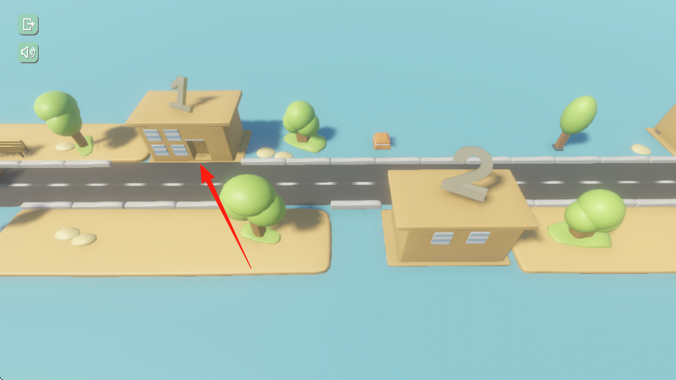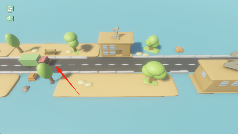 2、駕駛卡車繼續(xù)前行,跟著箭頭指引,精準???號建筑門口,這一步要把控好停車位置,為后續(xù)配送流程打基礎(chǔ),同時也熟悉小鎮(zhèn)不同建筑分布,方便后續(xù)任務(wù)。