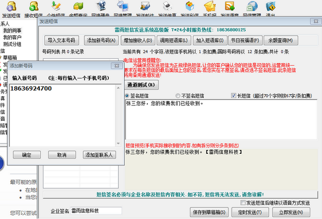 五、發(fā)送短信:發(fā)普通短信(記得選擇簽名短信,不帶簽名短信無法收到!)