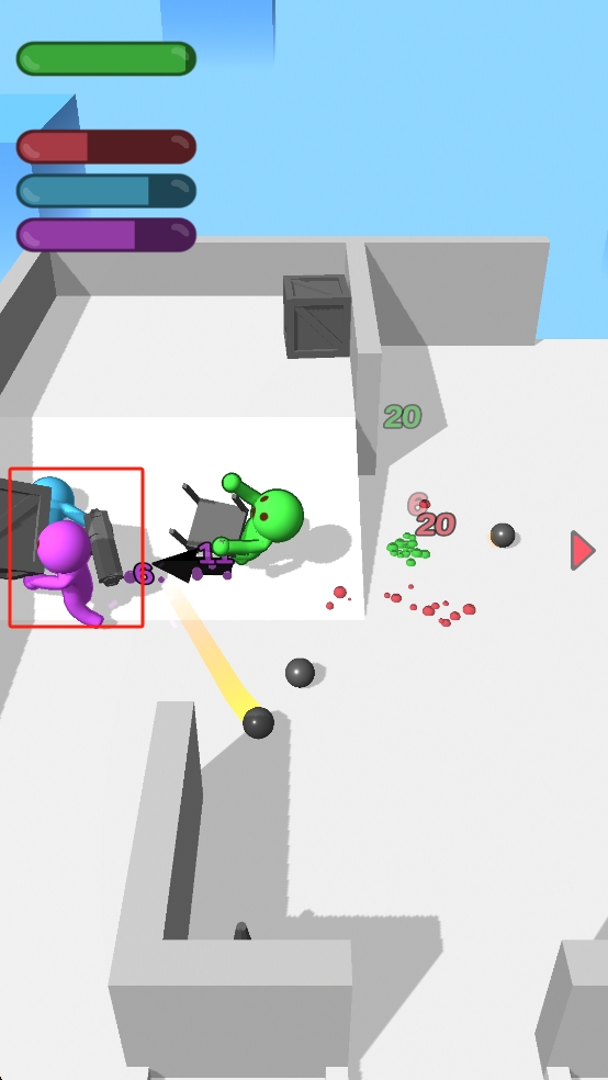 2、在雜亂的戰(zhàn)場中拾起地上的彈弓與石子,瞄準遠處的敵方陣營,同時躲避飛來的攻擊,找準時機發(fā)射石子擊中對手。