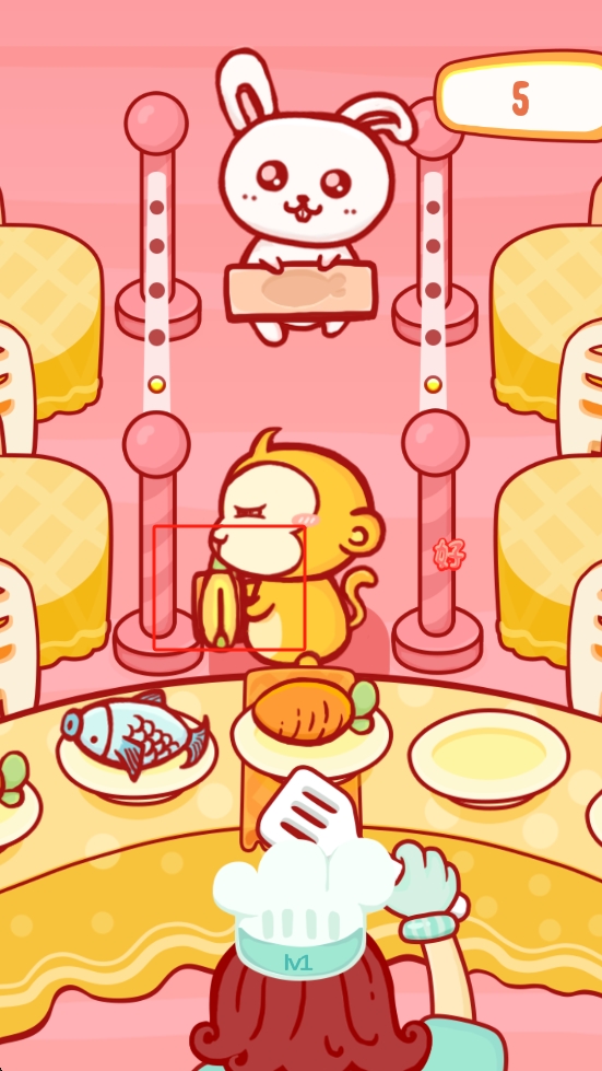 2、關(guān)注排隊(duì)顧客順序,先滿足兔子再服務(wù)猴子,及時(shí)遞送對(duì)應(yīng)餐品,保持送餐連貫,如果隊(duì)排滿了也會(huì)失敗的。