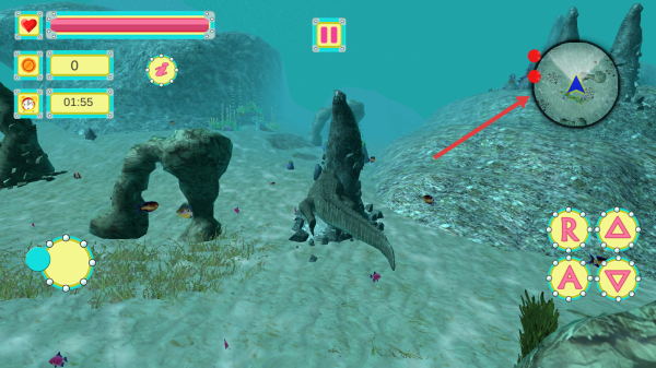 2、進(jìn)入關(guān)卡后看右上角地圖指引目標(biāo),點避開危險如礁石用右側(cè)按鍵R△等交互攻擊。