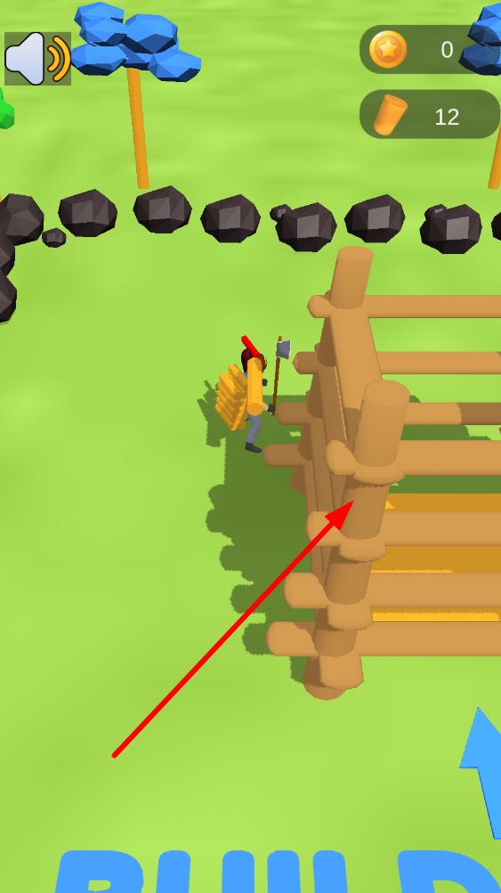 2、持續(xù)砍伐樹木積累資源,用部分樹木兌換金幣,部分用來制作基礎(chǔ)建筑。