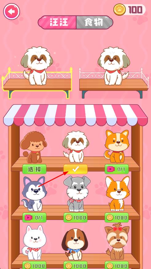 1、進(jìn)入游戲后選擇喜愛(ài)的小狗形象和音樂(lè)曲目,等待音樂(lè)響起,屏幕上方會(huì)有甜品開(kāi)始下落,準(zhǔn)備通過(guò)點(diǎn)擊控制小狗移動(dòng)。