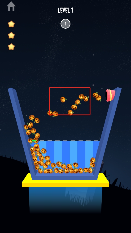 2、觀察空中掉落的南瓜,確保其全部落入藍(lán)色收集區(qū),留意軌跡避免遺漏,直至收集滿容器內(nèi)的南瓜。