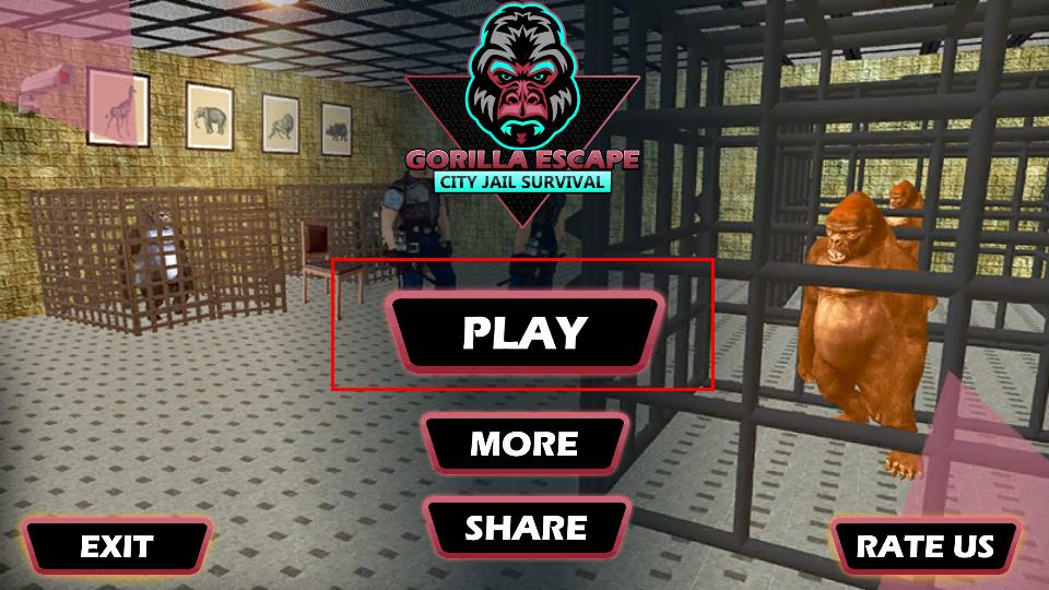 1、點擊PLAY按鈕開啟游戲,進入城市監(jiān)獄場景,開啟大猩猩逃脫主題冒險,直面獄中挑戰(zhàn)。