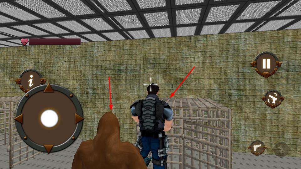 3、遭遇大猩猩和敵人時,利用武器攻擊,借助場景元素躲避,頑疾推進游戲,完成監(jiān)獄生存逃脫。
