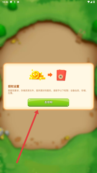 2、接著彈出授權(quán)設(shè)置提示,點擊去授權(quán)按鈕,允許游戲獲取設(shè)備信息等權(quán)限以提供服務(wù)。