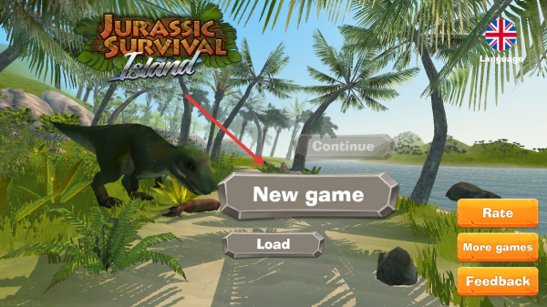 1、點(diǎn)擊游戲初始界面New game按鈕,進(jìn)入Jurassic Survival Island,開(kāi)啟恐龍島生存冒險(xiǎn)。