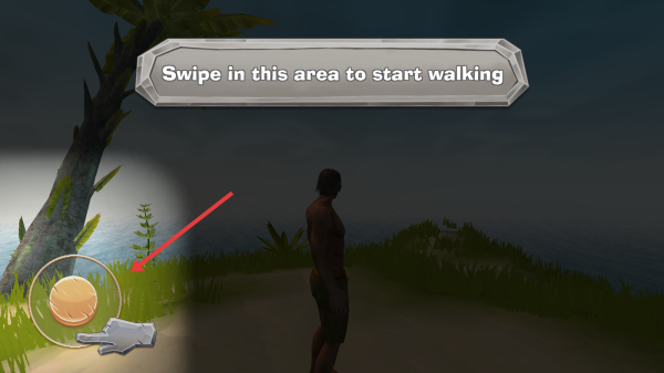3、在指定區(qū)域Swipe in this area to start walking,滑動(dòng)讓角色移動(dòng),探索島嶼推進(jìn)游戲。