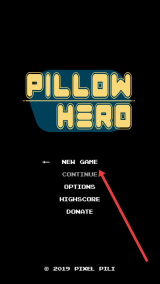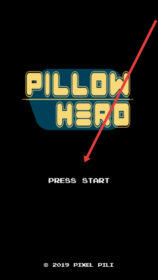 1、在游戲啟動界面,按照指示按下PRESS-START,進入Pillow-Hero主菜單,開啟像素冒險之旅。