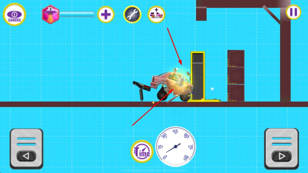 1、點(diǎn)擊右側(cè)前進(jìn)按鈕,操控車(chē)輛開(kāi)始移動(dòng),開(kāi)啟撞擊挑戰(zhàn)之旅。