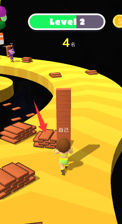 1、基礎(chǔ)操作直觀明了,滑動(dòng)屏幕控制角色移動(dòng),點(diǎn)擊按鈕收集場景中的木板,長按進(jìn)行搭建操作。