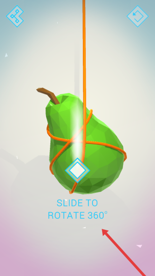 1、看到掛著的梨和SLIDE-TO-ROTATE-360°提示,滑動屏幕旋轉(zhuǎn)梨,查看其被繩索纏繞的全貌。