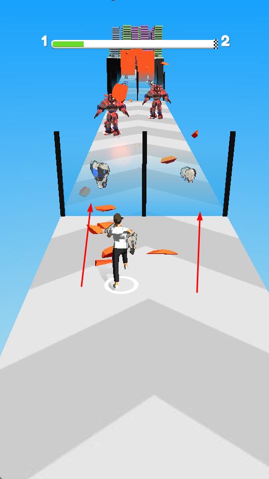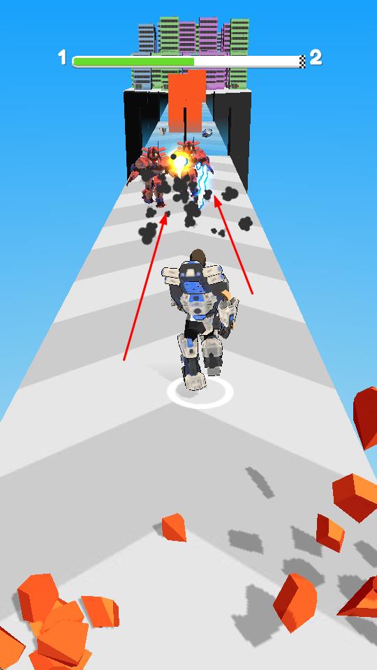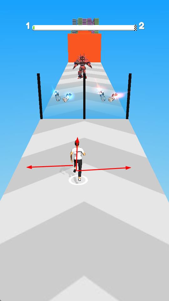 2、射擊消滅沿途障礙:遇到障礙物時(shí)切換至射擊模式,瞄準(zhǔn)目標(biāo)發(fā)射攻擊將其消滅,避免因碰撞阻礙前進(jìn),精準(zhǔn)射擊能提高闖關(guān)效率,讓跑酷更順暢地邁向終點(diǎn)。