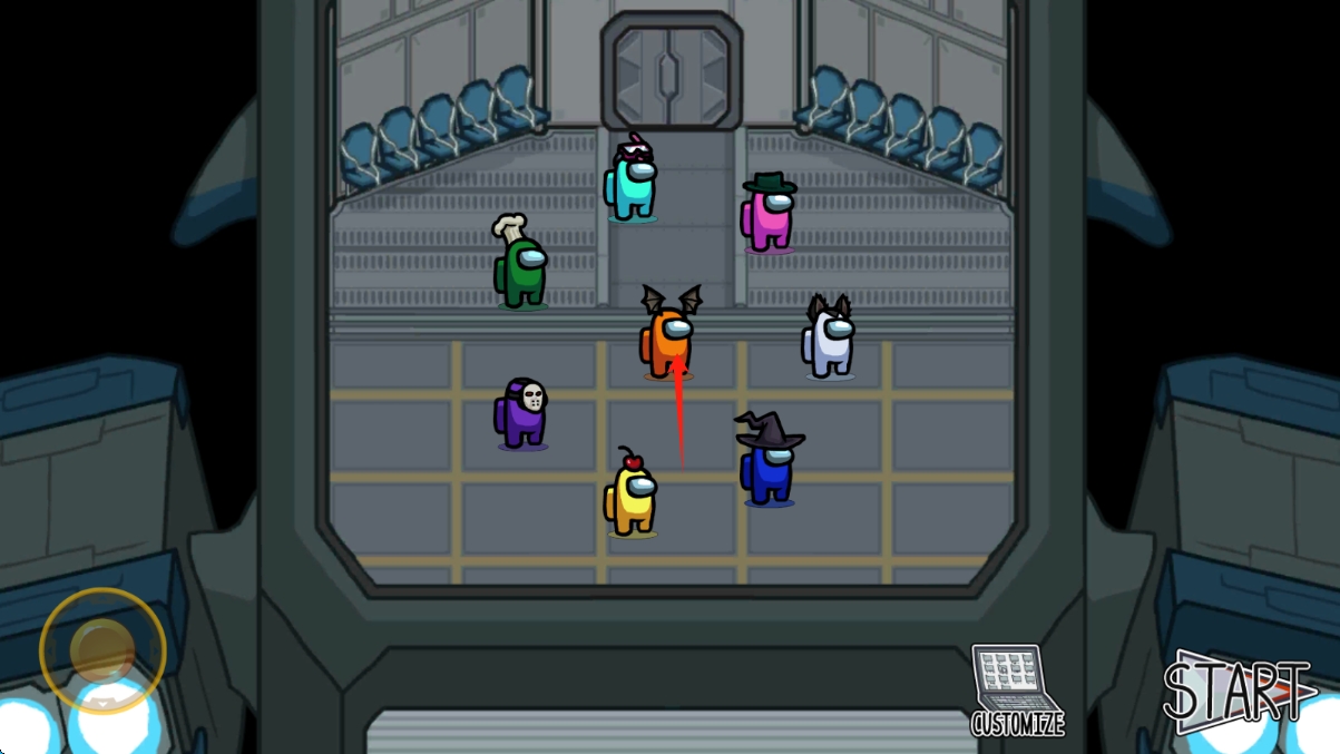 1、打開Among Us,點擊PLAY NOW,進入匹配,選船員/內(nèi)鬼身份,點擊按鈕開始游戲。