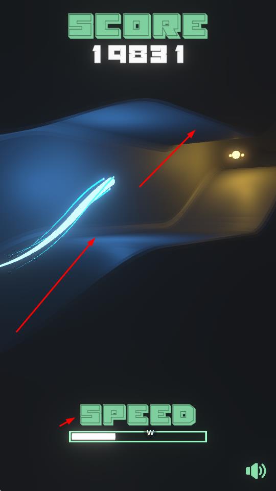 3、留意上方分?jǐn)?shù)SCORE和下方速度SPEED進(jìn)度條,根據(jù)場(chǎng)景變化合理規(guī)劃移動(dòng)策略,爭(zhēng)取獲得更高分?jǐn)?shù),挑戰(zhàn)更快速度,完成關(guān)卡挑戰(zhàn)。