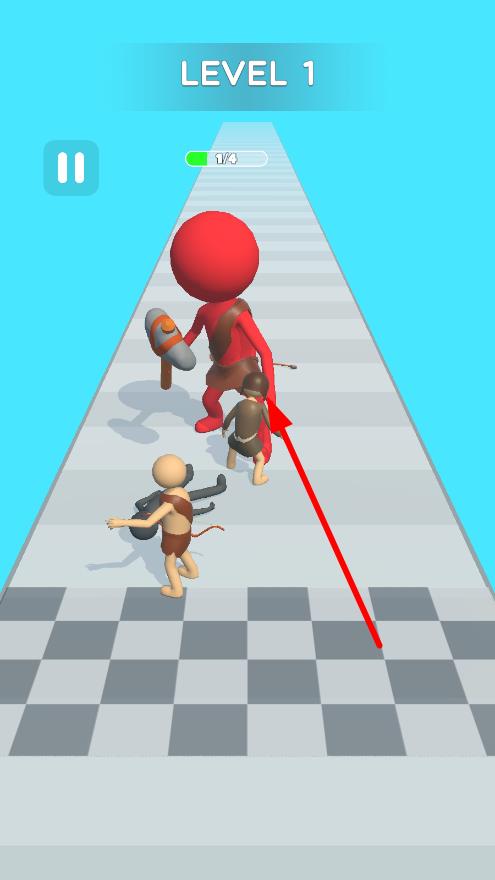 1、進入Level1關卡,操控角色沿跑道前進,遇到“FIRE RANGE+17”等綠色增益門,讓持槍角色穿過,提升武器射程屬性,強化戰(zhàn)斗能力。