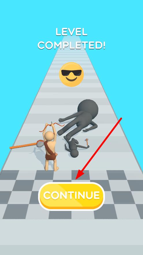 3、成功擊敗關卡敵人后,界面顯示“LEVEL COMPLETED!”,點擊黃色“CONTINUE”按鈕,結算獎勵并進入下一關,繼續(xù)時光跑酷戰(zhàn)斗。
