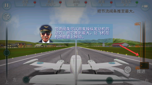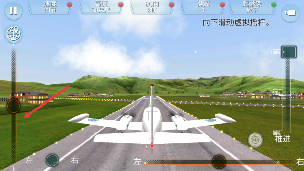 2、下滑虛擬搖桿,控制飛機(jī)起飛、調(diào)整飛行姿態(tài)。
