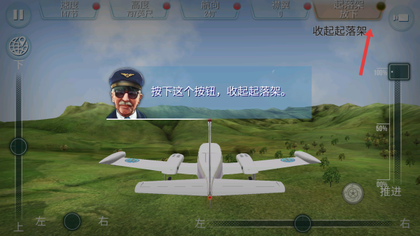 3、飛行后按提示收起起落架,繼續(xù)操控飛行完成任務(wù)。