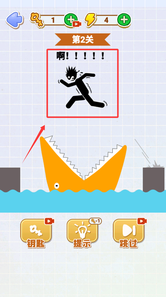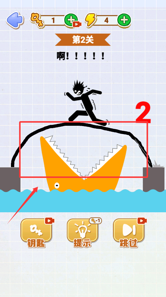 2、畫(huà)個(gè)紅色框框別讓鯊魚(yú)吃到它。