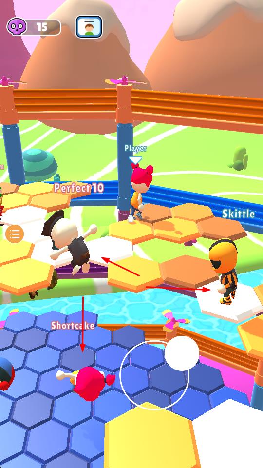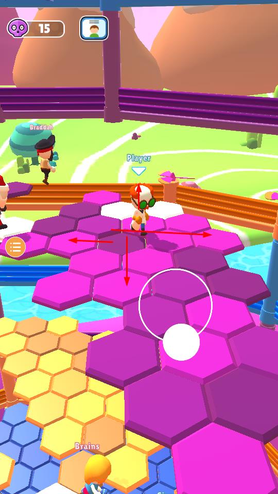1、操控角色在由六邊形組成的平臺上移動,躲避其他玩家的攻擊,同時尋找機會淘汰對手。