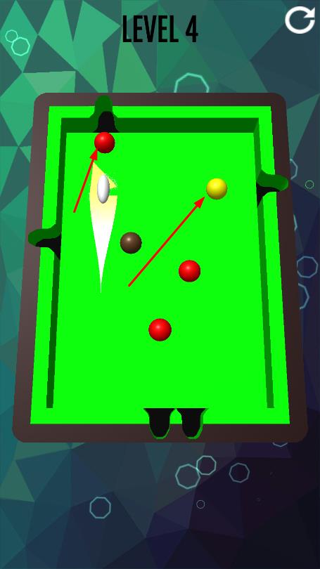 2、需規(guī)劃擊球路線,通過白球撞擊目標(biāo)球入袋,注意避開障礙球,完成關(guān)卡任務(wù)。