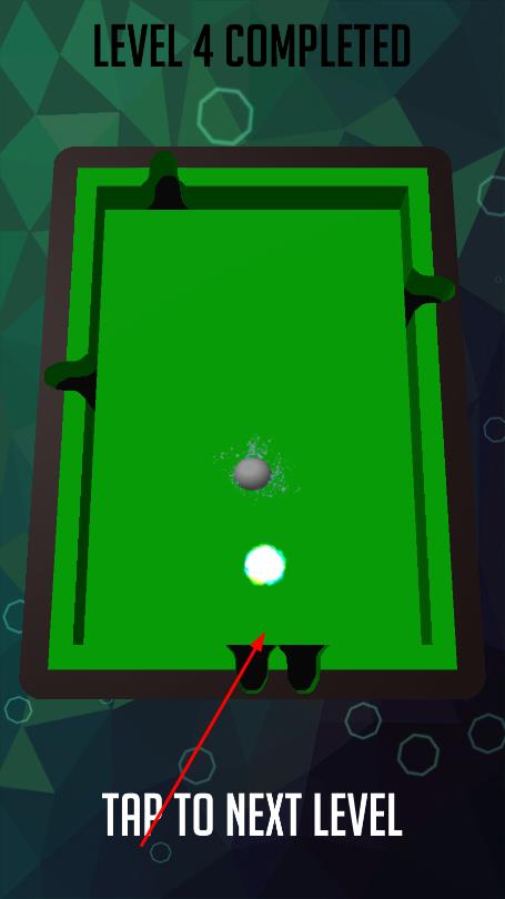 3、成功將目標(biāo)球全部入袋,顯示LEVEL4 COMPLETED,點(diǎn)擊TAP TO NEXT LEVEL進(jìn)入下一關(guān),挑戰(zhàn)更復(fù)雜臺球布局。