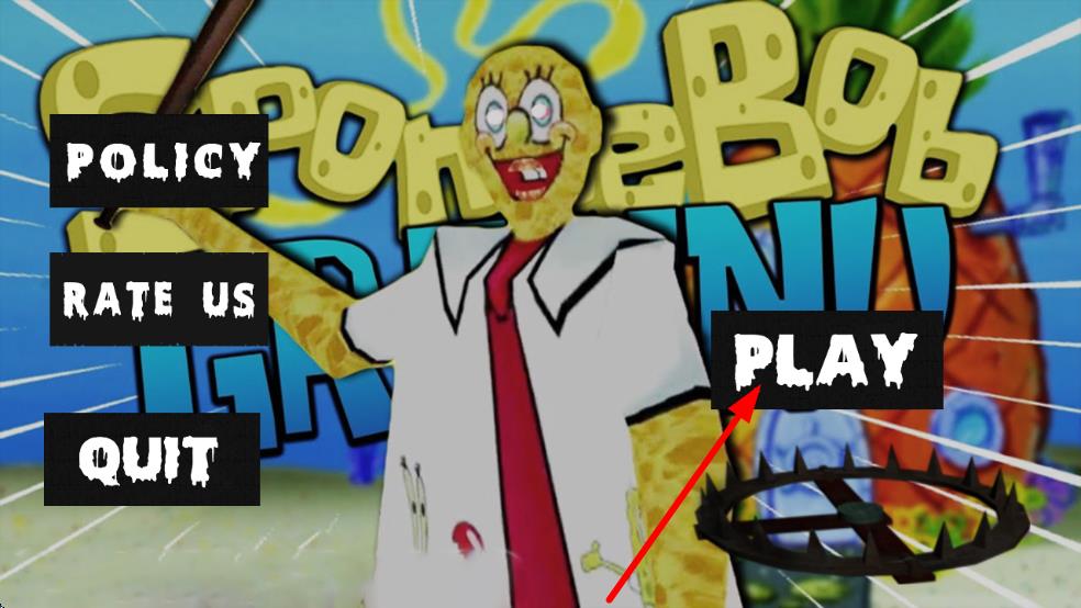 1、在游戲主界面,點擊PLAY按鈕,進入海綿寶寶主題的恐怖冒險游戲,開啟挑戰(zhàn)。