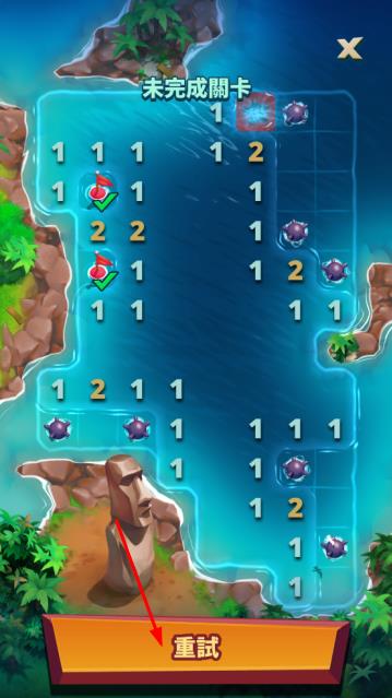 2、在闖關(guān)過程中,可點擊選項中的排雷按鍵標記疑似地雷位置,通過觀察數(shù)字與推理,逐步清除港口、碼頭及海底的地雷,完成拼圖挑戰(zhàn)。